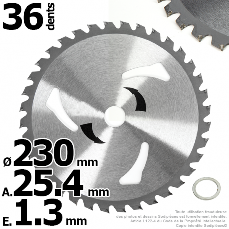 Disque 36 dents carbure 230 x 1,3 x 25.4 pour débroussailleuse avec dents widia, un alliage à base de tungstène, parfait pour le nettoyage de sous bois, coupe de petite branche de buisson ou de jeune arbuste.
