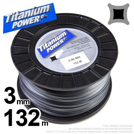 Fils nylon carré Titanium pour débroussailleuses diamètre 3 mm en bobine de 132 mètres fabriqué avec des matières révolutionnaire. Une enveloppe résistante au choc et à l’usure et au centre un fil flexible minimisant la rupture.