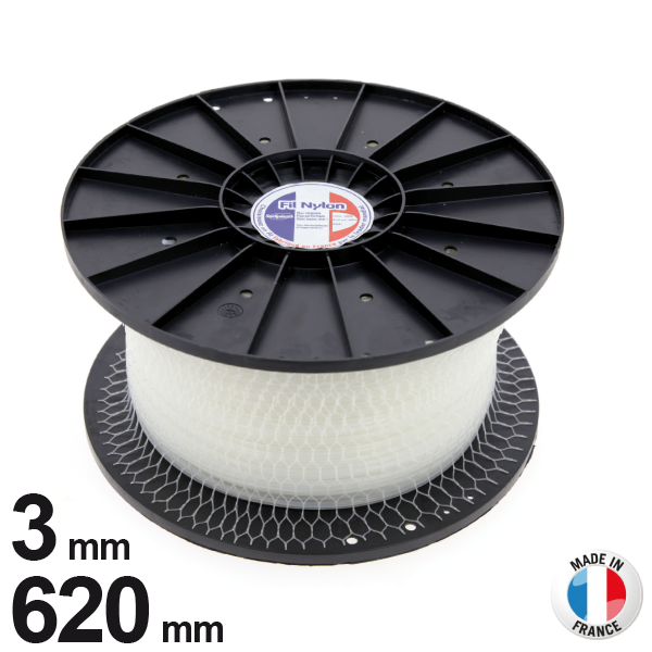 Fils nylon rond pour débroussailleuses diamètre 3 mm en bobine de 620 mètres fabriqué avec des matières à haute durabilité.