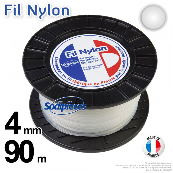 Bobine de fil nylon rond blanc 4mm x 90m pour débroussailleuse.