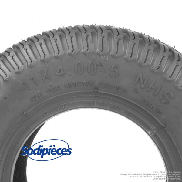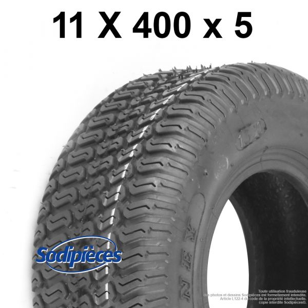 Pneumatique 5 pouces, profil gazon, 4 plis, taille 11×400-5 (11x400x5) montage tubeless.